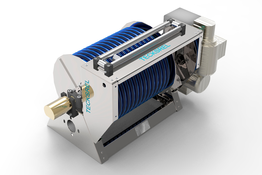 Devanadera automática con enrollamiento guiado para alimentación de agua.